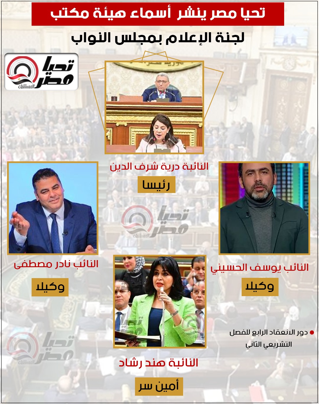 هيئة مكتب إعلام النواب بعد انتخابات دور الانعقاد الرابع