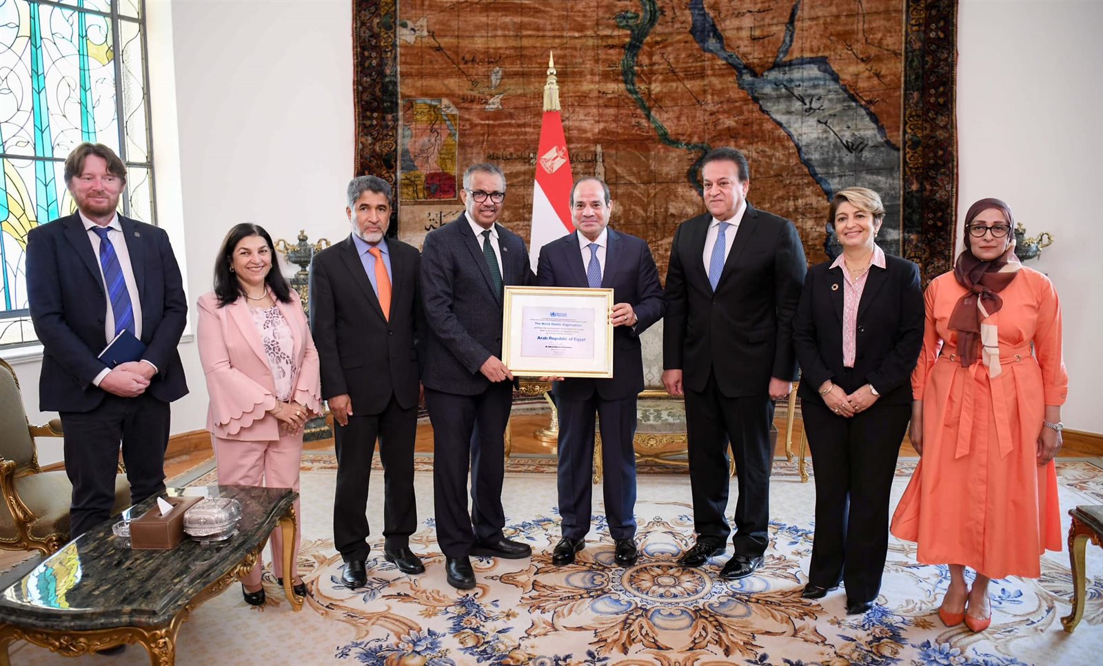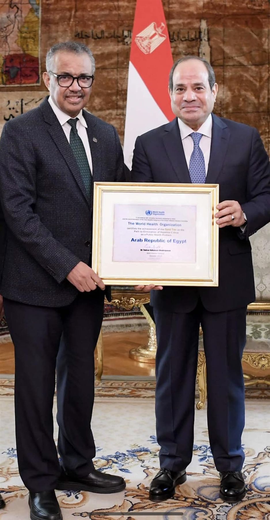 مدير الصحة العالمية يسلم الرئيس السيسي شهادة المستوى الذهبي على مسار القضاء على فيروس سي في مصر