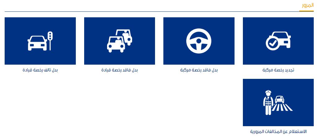 كما أتاح موقع وزارة الداخلية خدمات المرور، والتي من بينها تجديد رخصة المركبة، واستخراج بدل فاقد لرخصة المركبة وايضا بدل فاقد لرخصة القيادة وبدل تالف لرخصة القيادة وايضا الاستعلام عن المخالفات المرورية، من خلال الضغط على الخدمات واختيار الخدمة المطلوبة والتي من أهمها الاستعلام عن المخالفات المرورية والتي ينشغل الكثير بالبحث عنها في محرك البحث العالمي جوجل.