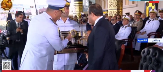 أهدى اللواء هاني أبو المكارم رئيس أكاديمية الشرطة، الرئيس عبد الفتاح السيسي مجسما لبوابة أكاديمية الشرطة.