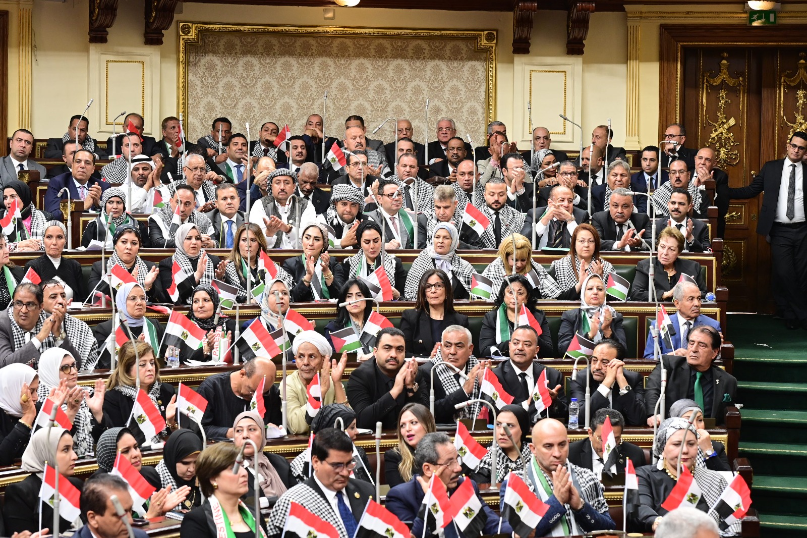 في جلسة تاريخية طارئة، عقدها مجلس النواب، اليوم الخميس، عبر النواب عن وقوفه خلف الرئيس عبد الفتاح السيسي، وتفويضه في اتخاذ ما يراه مناسبًا للحفاظ على الأمن القومي المصري وحماية حقوق الفلسطينيين، وذلك بعد الاعتداءات والانتهاكات التي يمارسها الحتلال الإسرائيلي تجاه الشعب الفلسطيني الشقيق، ومخطط التهجير الذي يكثف مساعيه مدعومًا من أمريكا والغرب، لنقل شعبها إلى سيناء وتصفية القضية.