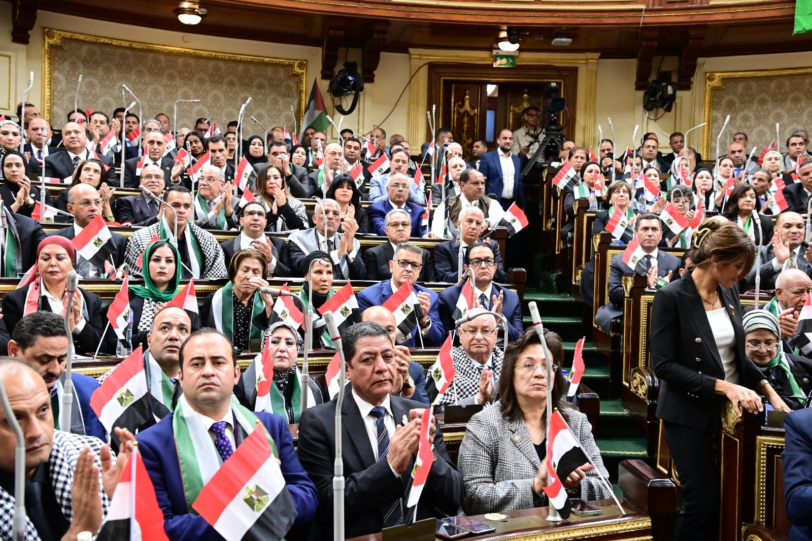 النواب تفاعلوا وسط حماس شديد وشعور وطني وعربي مشتعل مع الموقف المصري الحاسم بشأن رفض مخطط تصفية القضية الفلسطينية، كما أعربوا عن تنديدهم بالمذابح التي يقوم بها الاحتلال الإسرائيلي في حق الشعب الفلسطيني الأعزل، وسط صمت دولي يتنافى مع المبادئ المعروفة لديهم بحقوق الإنسان.