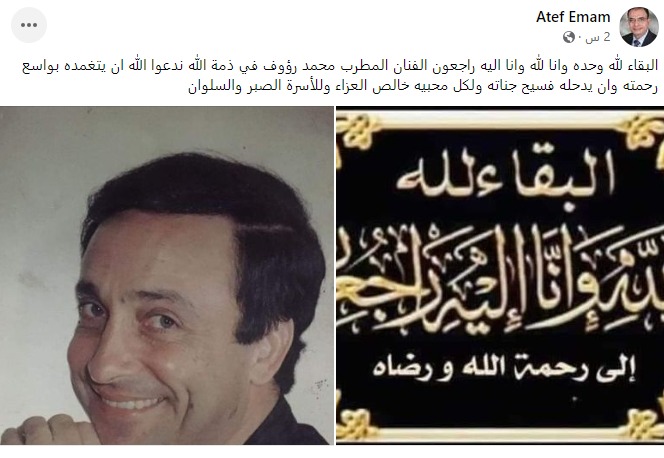 وقال عاطف إمام عضو نقابة المهن الموسيقية عبر حسابه الرسمي بموقع التواصل الاجتماعي فيس بوك: البقاء لله وحده وانا لله وانا اليه راجعون الفنان المطرب محمد رؤوف في ذمة الله ندعوا الله ان يتغمده بواسع رحمته وأن يدخله فسيح جناته ولكل محبيه خالص العزاء وللأسرة الصبر والسلوان.