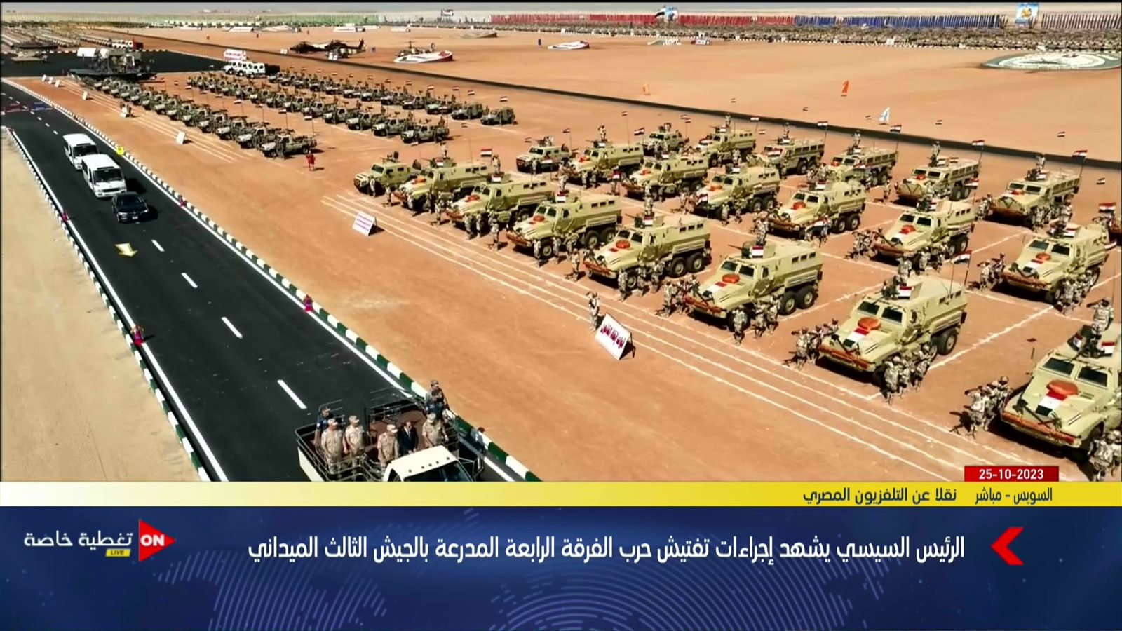 مشهد مهيب، استعراض احترافي، جرأة قتالية وجاهزية عالية، أظهرها أسود الجيش المصري اليوم، خلال تفقد الرئيس عبدالفتاح السيسي، اصطفاف الفرقة الرابعة المدرعة فى الجيش الثالث الميدانى فى محافظة السويس، موجها مجموعة من الرسائل شديدة الأهمية في دلالتها وتوقيتها.