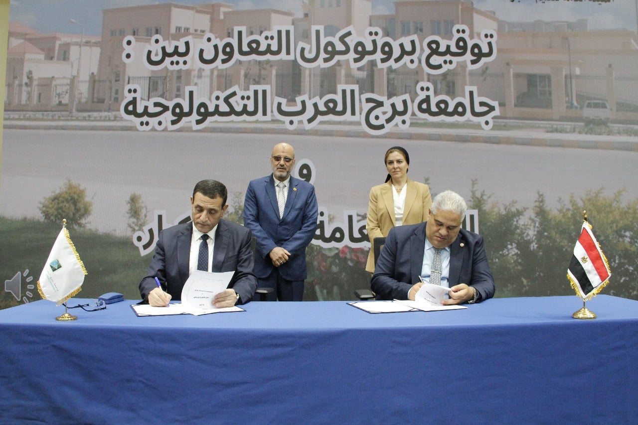 فى إطار محو الأمية والأمية الرقمية.. وقعت جامعة برج العرب التكنولوجية بروتوكول تعاون مُشترك مع الهيئة العامة لتعليم الكبار؛ والذي يهدف الي محو الأمية والأمية الرقمية واعداد محتوي دراسي مشترك لمحو الأمية الرقمية سيتم اعداده كلا من الجامعة والهيئة.