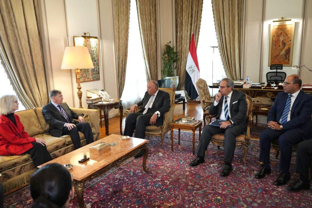 وكشف المتحدث الرسمي باسم وزارة الخارجية، أن اللقاء بين الوزير شكري والمبعوث الأمريكي شهد نقاشاً مستفيضاً حول الوضع الإنساني في قطاع غزة، وضرورة تكثيف آليات التنسيق بين جميع الأطراف من أجل ضمان دخول المساعدات الإنسانية بشكل فوري ومستدام، حيث أكد الوزير شكري على حجم الكارثة الإنسانية التي يشهدها القطاع في ظل تجاوز أعداد الضحايا من الفلسطينيين لما يزيد عن السبعة آلاف والنصف في غضون ثلاثة أسابيع، مشدداً على ضرورة وجود تحرك دولي جاد ومنسق لإنفاذ هدنة إنسانية فورية، وتجنيب تعريض المدنيين للمزيد من ويلات هذا التصعيد وتحت مبررات مغلوطة بمسميات حق الدفاع عن النفس أو مقاومة الإرهاب.