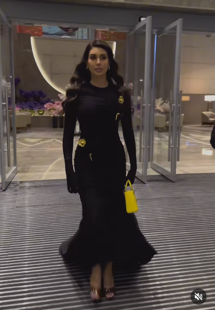 وظهرت ياسمين صبري في فعاليات موسم الرياض السعودي الذي يقام في الفترة الحالية بفستان أسود أنيق صك وذو أكمام، وحرصت على تزينه ببعض الاكسسوارات كالحقيقة الصفراء التي تشبه لون الوردة الموجودة على الفستان من ناحية الكتف.