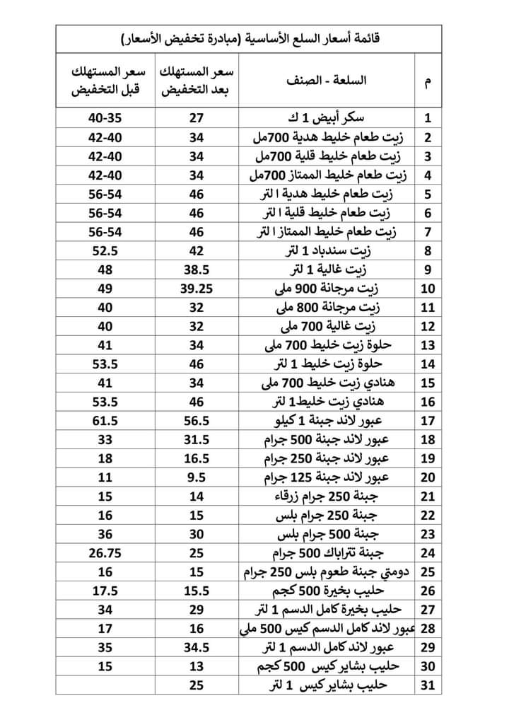 واعلنت وزارة التموين والتجارة الداخلية عن أسعار السلع الغذائية فى مبادرة خفض الأسعار وجاءت كالتالي: