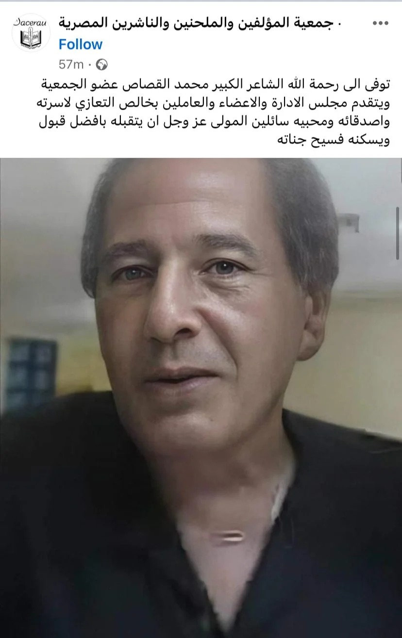 صاحب أغنية علي الضحكاية.. وفاة الشاعر محمد القصاص