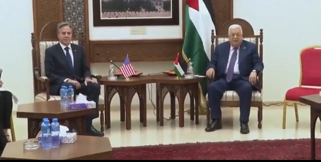 التقى الرئيس الفلسطيني محمود عباس في رام الله، اليوم الأحد، وزير الخارحية الأمريكي أنتوني بلينكن، في أول زيارة إلى لرام الله منذ بداية الحرب في 7 أكتوبر.