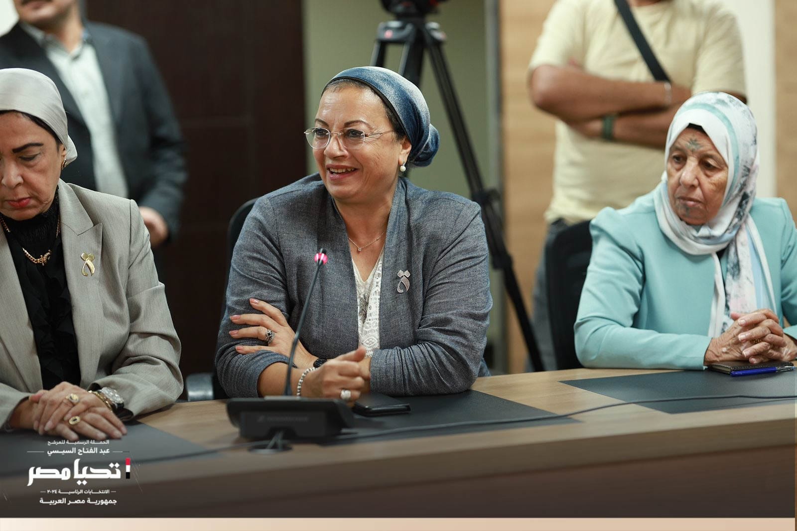 وثمن المستشار محمود فوزي رئيس الحملة الانتخابية دور المجلس القومي للمرأة في الحرص على توعية المرأة بممارسة حقوقها وخاصة المدنية والسياسية، وتمكين المرأة في كافة المحافظات، مشيدًا بدور المرأة الفعّال في المجتمع وأنها ضربت أروع الأمثلة في المشاركة في كل استحقاق وانتخاب، مشيرا إلى أن ملف تمكين المرأة شهد طفرة غير مسبوقة في عهد المرشح الرئاسي عبد الفتاح السيسي سواء اقتصاديًا وسياسيًا واجتماعيًا، الذي يؤمن بأن تمكين المرأة واجب وطني، فقد تقدلت المرأة المناصب القيادية في عهد سيادته، وتم استحداث آليات تشجيعية وتحفيزية تعكس الإرادة السياسية القوية نحو هذا الاتجاه، ومن هذا المنطلق ترجمت الاستحقاقات الدستورية الخاصة بالمرأة إلى سياسات وتشريعات واجراءات تنفيذية تقوم بها كافة الجهات، وقد تضمن الدستور أكثر من 20 مادة تناولت موضوعات تمس المرأة بشكل مباشر مثل المساواة وتجريم العنف و تم تنظيم المجلس القومي للمرأة بقانون منحه الصلاحيات و الاستقلال المطلوب، مؤكداً أن حملة المرشح الرئاسي على استعداد تام لتتلقى بكل سرور مقترحات ومتطلبات أعضاء المجلس وسيدات مصر.