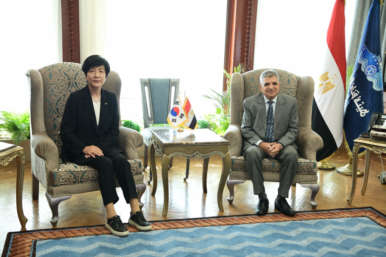 استقبل الفريق أسامة ربيع رئيس هيئة قناة السويس، اليوم الإثنين، السيدة كيم يونج جو نائبة رئيس الجمعية الوطنية بكوريا الجنوبية على رأس وفد برلماني كوري رفيع المستوى، بحضور السفير كيم يونج هيون سفير كوريا الجنوبية بالقاهرة، وذلك بمنى الإرشاد بمحافظة الإسماعيلية.