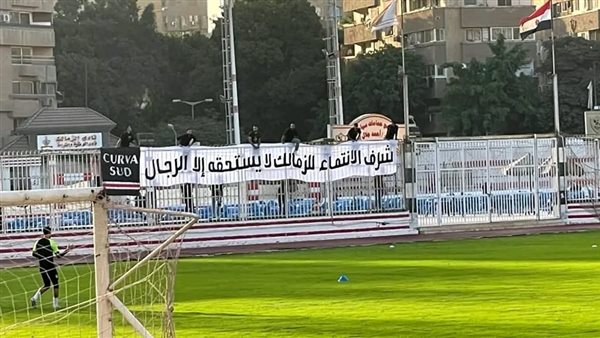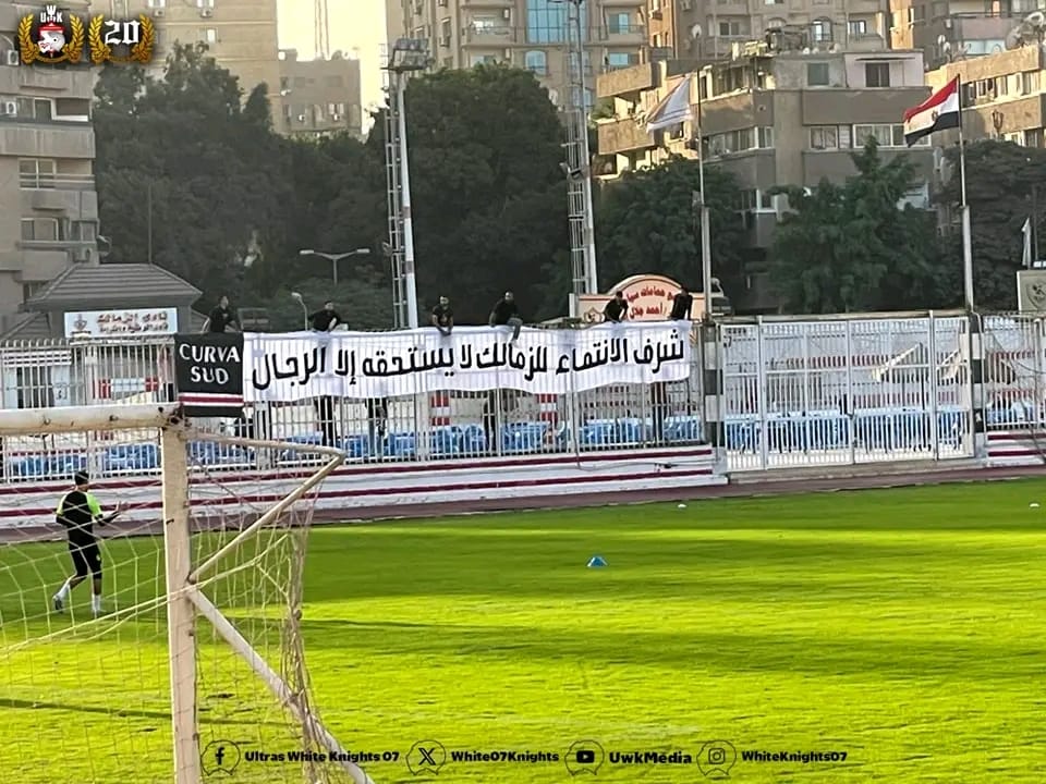 وعلقت جماهير الزمالك لافتة على ستاد عبد اللطيف أبو رجيلة مدون عليها: «شرف الانتماء للزمالك لا يستحقه إلا الرجال».