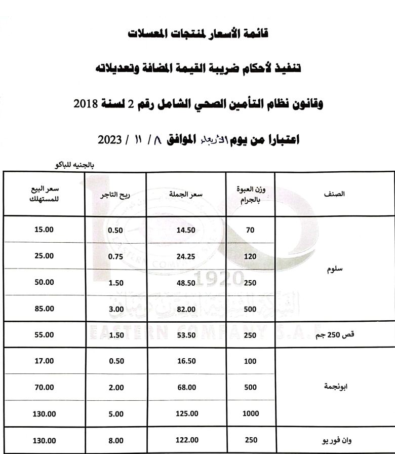 - وزن 250 جرام بسعر 50 جنيها بهامش ربح للتاجر 1.5 جنيه
