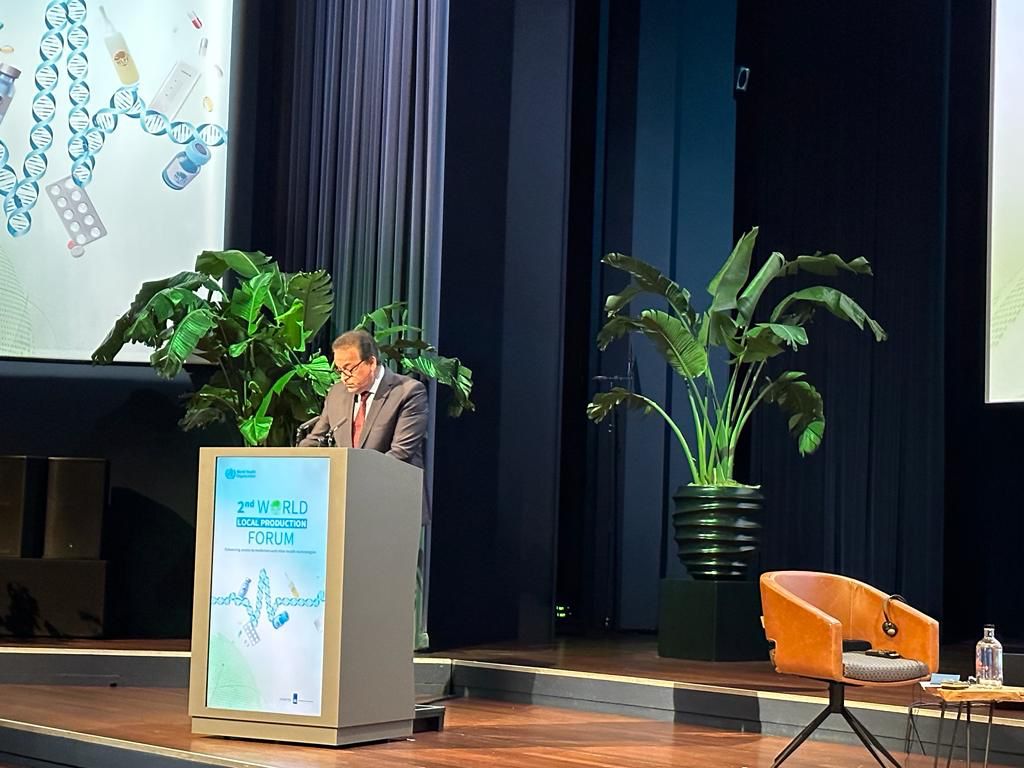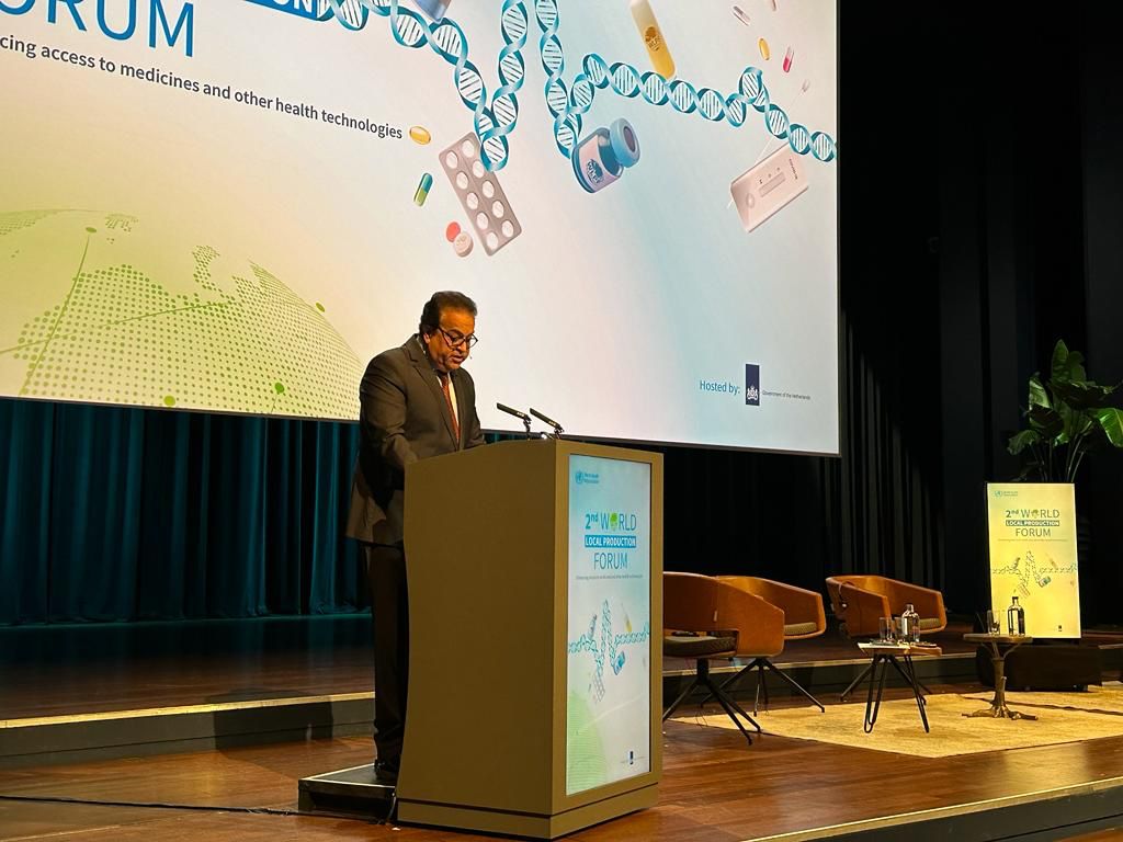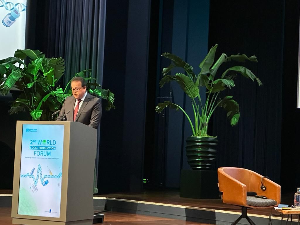 وأعرب وزير الصحة والسكان، عن سعادته بالمشاركة في هذا المنتدى الهام الذي يستضيف تجمعا كبيرا من وزراء الصحة والخبراء وأصحاب المصلحة، من مختلف دول العالم، متقدما بالشكر للدكتور تيدروس أدهانوم المدير العام لمنظمة الصحة العالمية، لجهوده النبيلة في تنظيم هذا المنتدى للبناء على التقدم المحرز في المبادرة العالمية للإنتاج المحلي الذي عقد عام 2021.