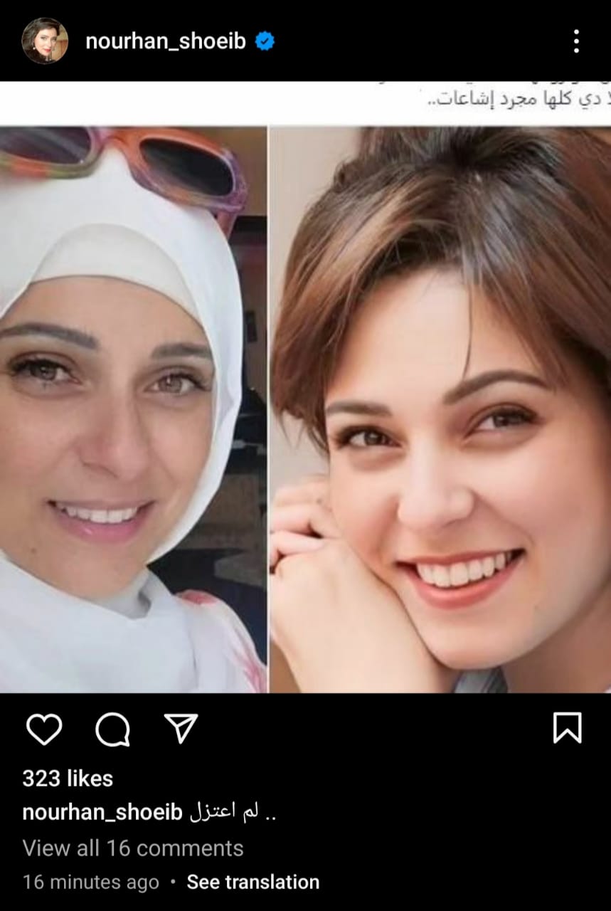 نفت الفنانة نورهان كل ما تم تداوله خلال الساعات الأخيرة حول اعتزالها مهنة التمثيل، وذلك من خلال منشور عبر حسابها الشخصي على موقع تبادل الصور والفيديوهات إنستجرام.