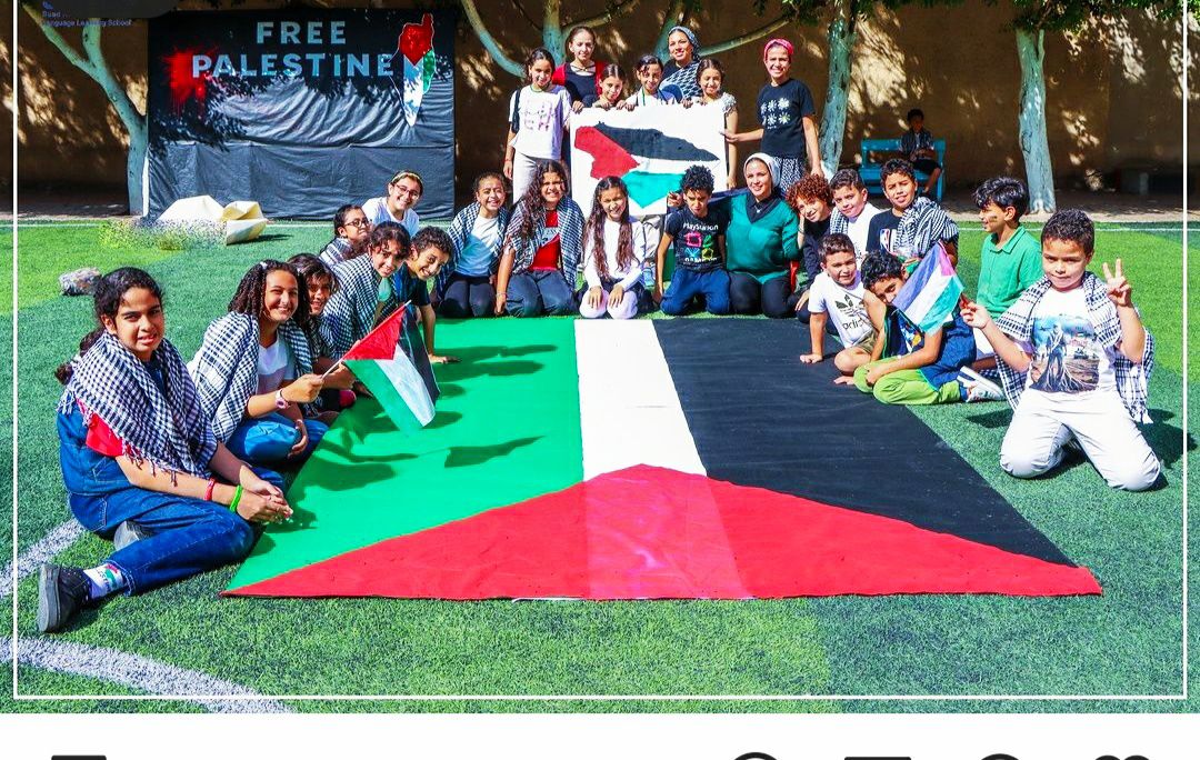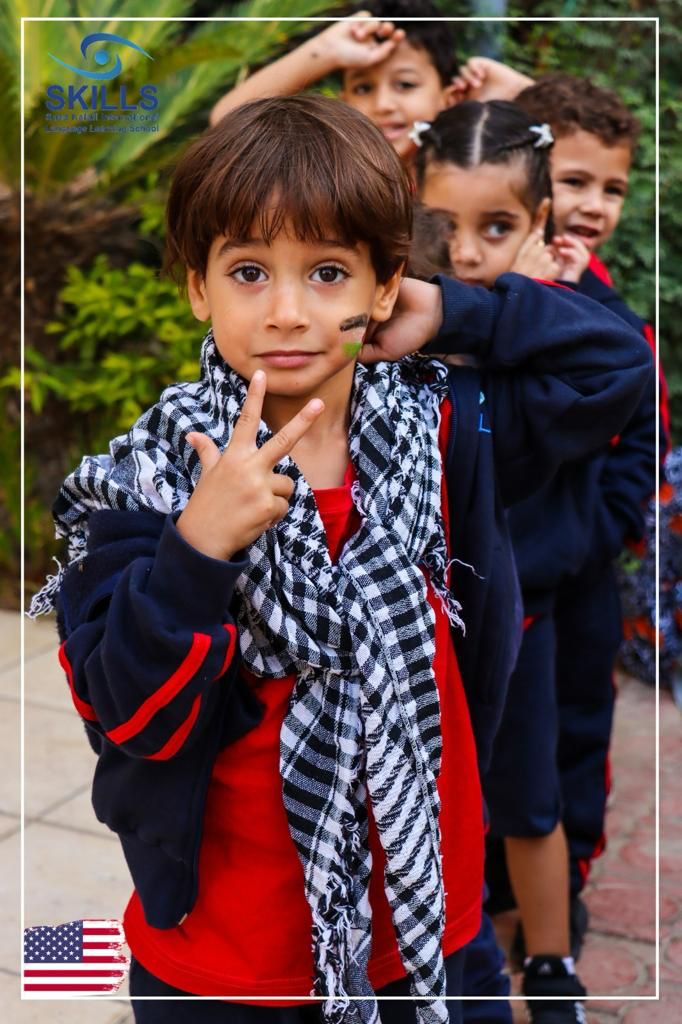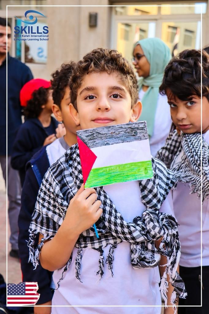 نشرت مدارس « سكيلز» الدولية للغات، عبر صفحتها الرسمية بموقع التواصل الاجتماعى "فيسبوك" صورا لطلاب المدرسة الصغار، وهم يرفعون أعلام دولة فلسطين تضامنا مع ما يحدث فى غزة، كما نشرت المدرسة صورًا للأطفال وهم يرتدون "الكوفية الفلسطينية".
