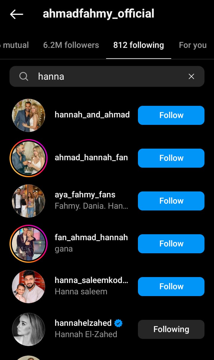 وبالدخول على صفحة الثنائي أحمد فهمي وهنا الزاهد عبر موقع تبادل الصور والفيديوهات انستجرام وجدنا أنهم لازال يتابع بعضهم البعض، كما أن كل منهما يحتفظ بصوره الرومانسية مع الأخر.