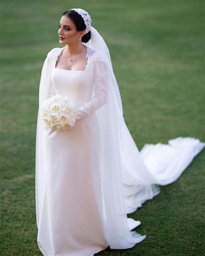 ومن جانبها، ظهرت دانية الشافعي في أبهى صور الجمال من خلال فستانها التي أقتنته لحفل زفافها حيث كان الفستان طويل وضيق مما أظهر جسدها الممشوق، مكتفية ببعض التطريزات على الأكتاف، مرتدية طرحة طويلة من الشيفون، وكان أشبه بإطلالة ملكية.