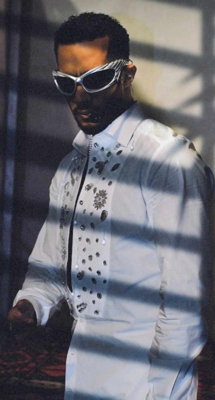 وظهر محمد رمضان خلال الحفل بإطلالة وصل سعرها إلى 3،645 دولارًا أمريكيًا أي ما يعادل 112 ألف جنيها مصريا، حيث ارتدى قميص أبيض مفتوح الصدر ومرصع بالألماظ عند منطقة الصدر.