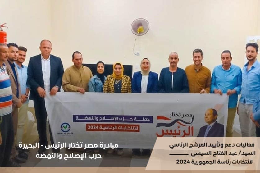 - أطلق حزب الاصلاح والنهضة بمحافظة البحيرة مبادرة "مصر تختار الرئيس" وعقد لقاءات مع المواطنين لتوعيتهم بالمشاركة الإيجابية في الانتخابات الرئاسية بمركز شباب حمور بزاوية غزال ودعم المرشح الرئاسي عبد الفتاح السيسي في الانتخابات الرئاسية القادمة
