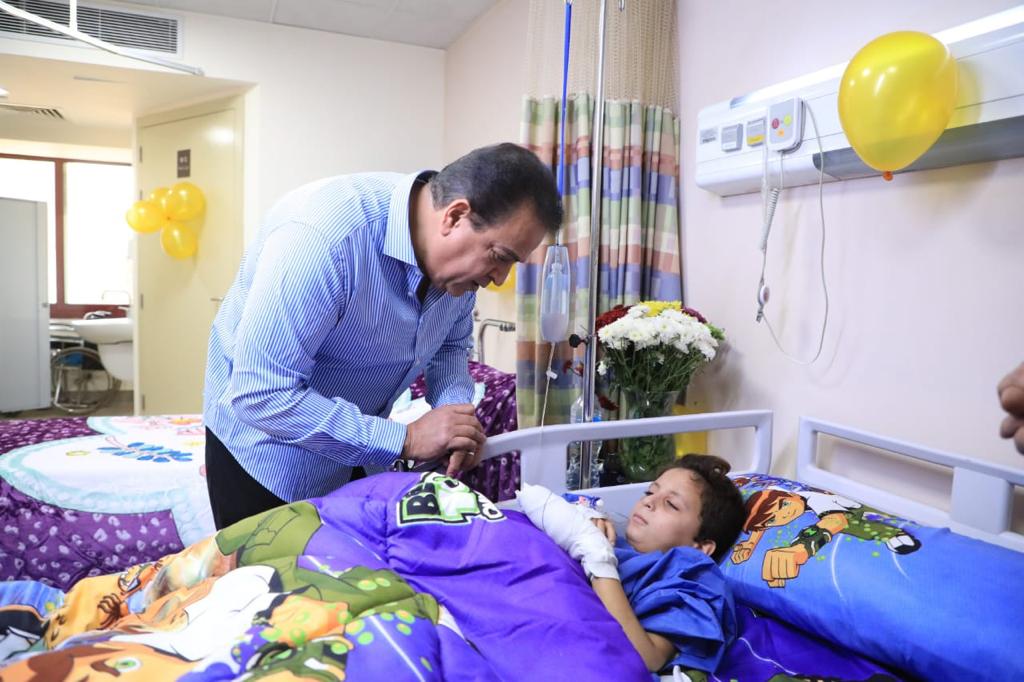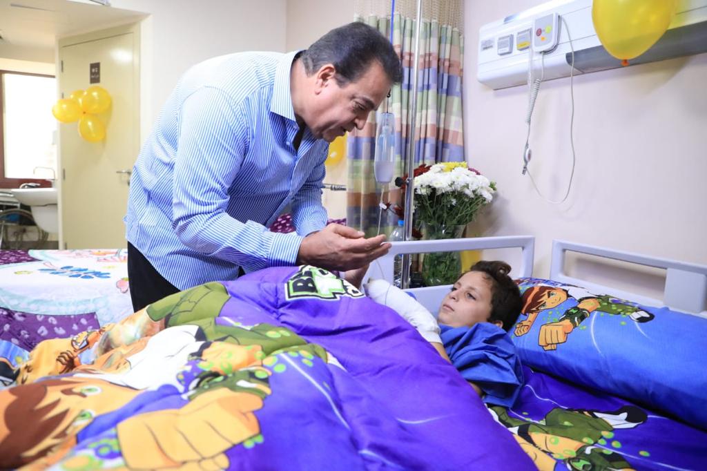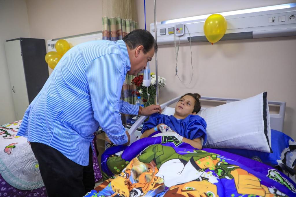 وزير الصحة يطمئن على الطفل الفلسطيني «عبدالله الكحيل» بمعهد ناصر ويجتمع مع الفريق الطبي المعالج
