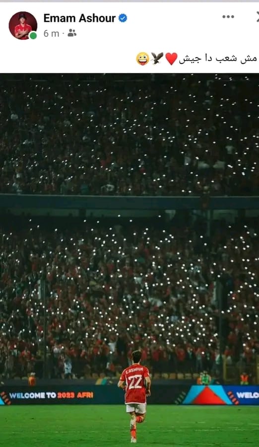 وعلق إمام عاشور على صفحته الرسمية على فيس بوك: «جماهير الأهلي مش شعب دا جيش».