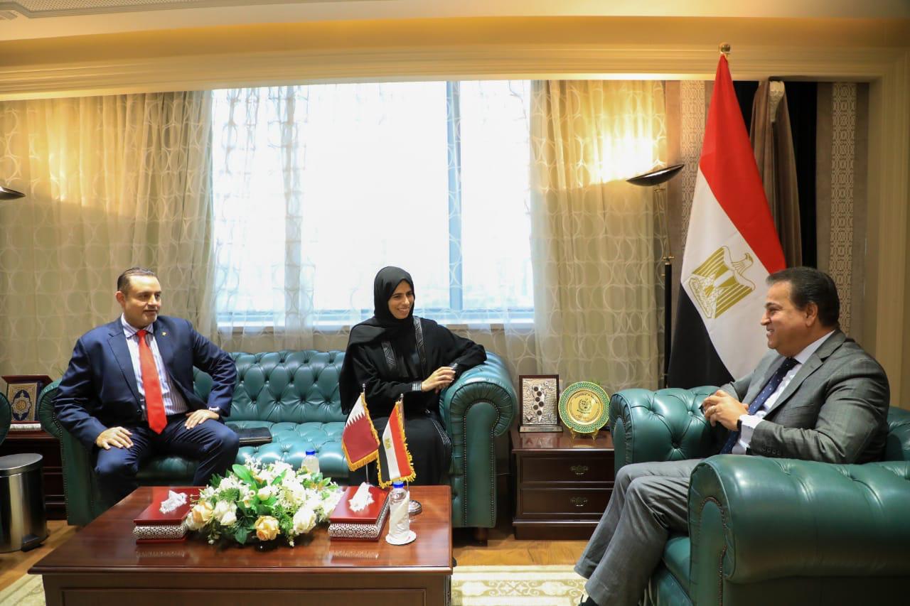 وزير الصحة يستقبل وزيرة التعاون الدولي بقطر لبحث دعم الأشقاء الفلسطينيين في قطاع غزة