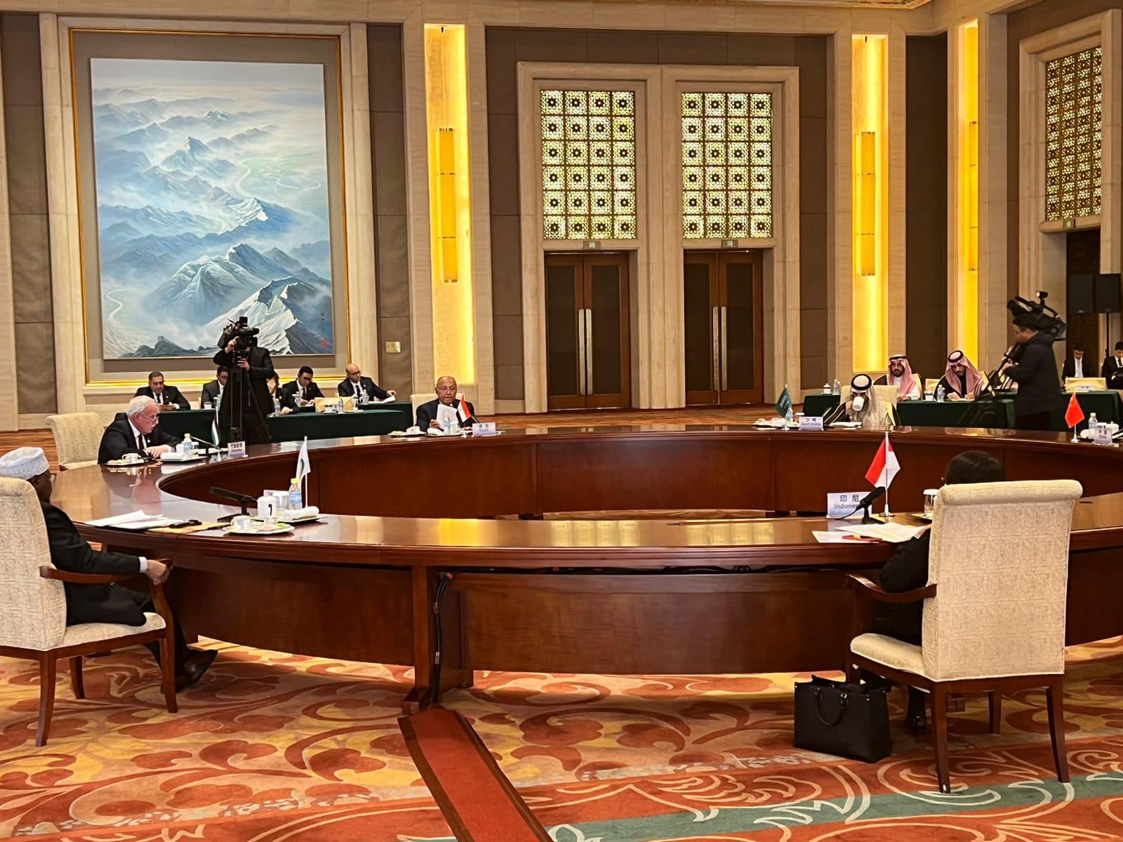 ومن جانبه، رحب وزير خارجية الصين بزيارة اللجنة مؤكداً موقف الصين الداعم للحقوق العربية والإسلامية، والمدافع عن الشرعية الدولية، مؤكداً كذلك على ضرورة تنفيذ قراري مجلس الأمن والجمعية العامة المعنيين بالأزمة في قطاع غزة، وضرورة الوقف الفوري لإطلاق النار لتوفير الحماية للمدنيين الفلسطينيين. وأعلن وزير الخارجية الصيني عن اعتزام بلاده الدعوة إلى اجتماع لمجلس الأمن على المستوى الوزاري تحت الرئاسة الصينية، وتطلعه لمشاركة أعضاء اللجنة في الاجتماع للتأكيد على الموقف العربي والإسلامي الجماعي المطالب بوقف الحرب، والداعم للحقوق الفلسطينية.