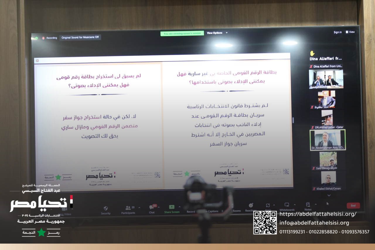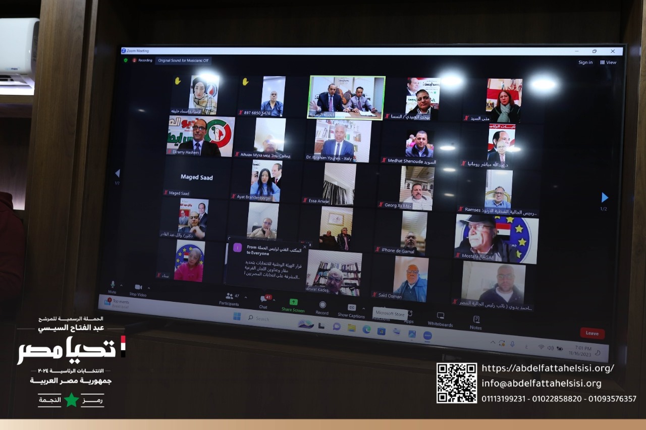حملة السيسي تستمر في عقد عدداً من اللقاءات مع المصريين بالخارج عبر تقنية «الفيديو كونفرانس»