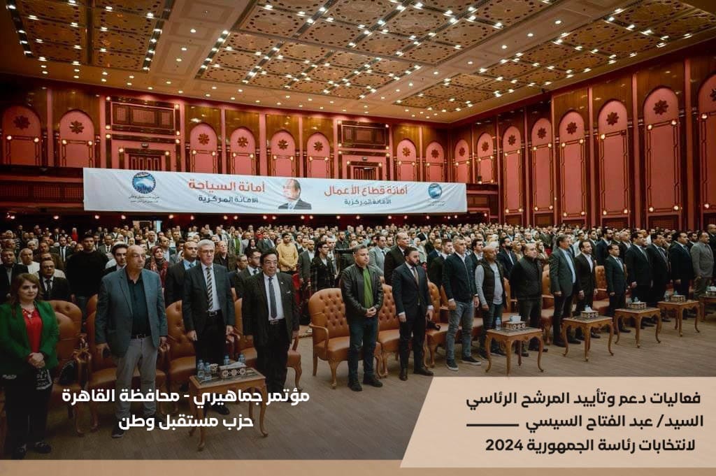 - نظمت أمانتي قطاع الأعمال والسياحة المركزيتين بحزب مستقبل وطن مؤتمراً حاشداً لدعم المرشح الرئاسي عبد الفتاح السيسي والتأكيد علي أهمية المشاركة الايجابية و الفعالة.