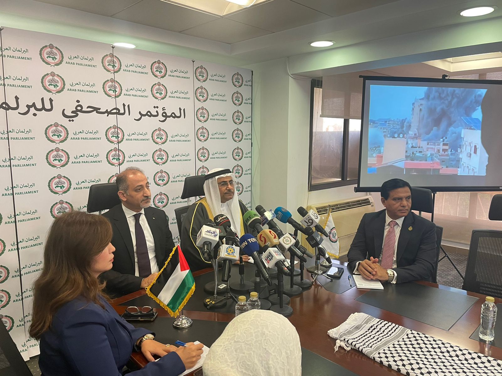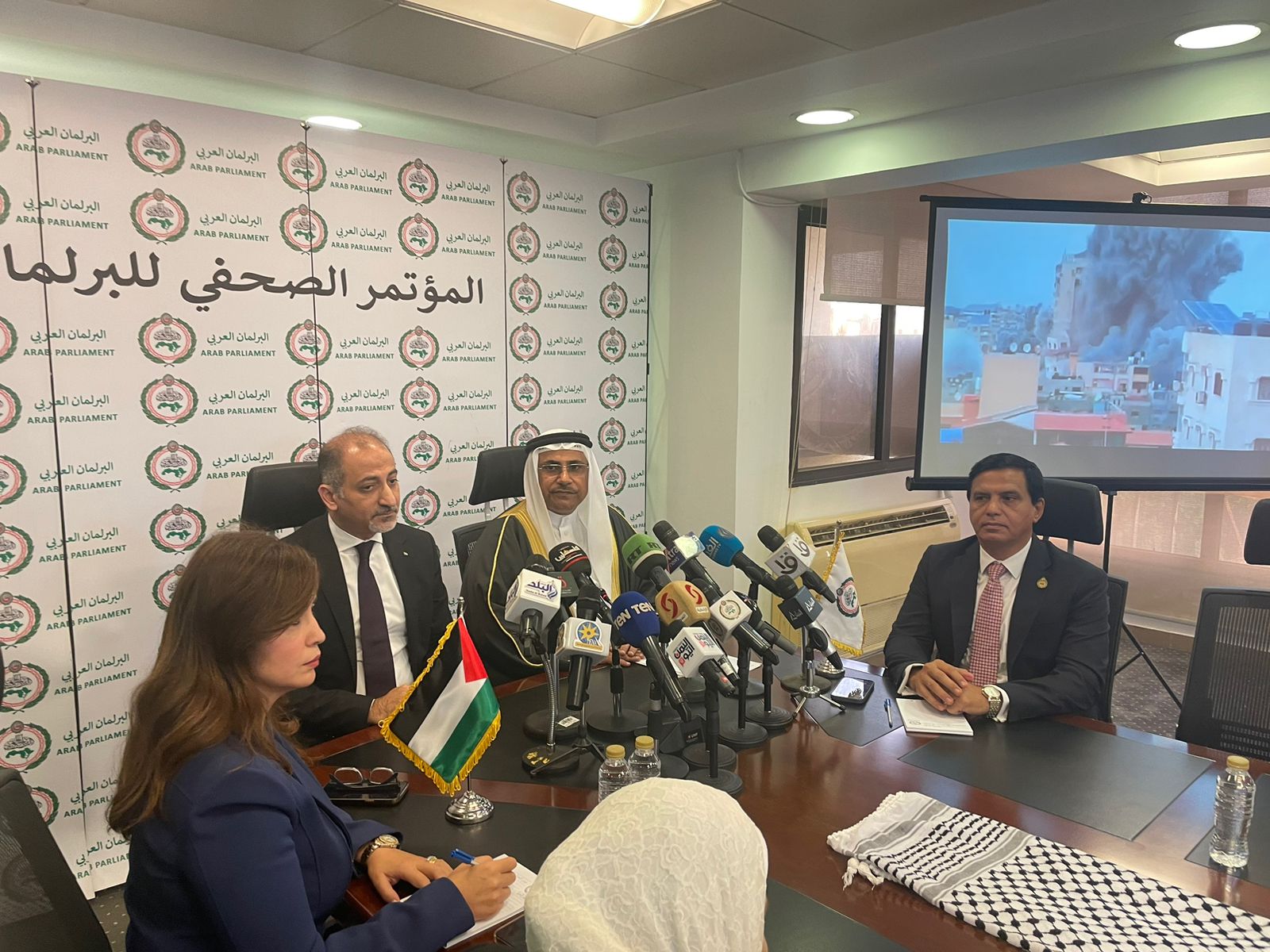 جاء ذلك خلال المؤتمر الصحفي المشترك بين البرلمان العربي ولجنة حقوق الإنسان في مجلس النواب المصري، وبحضور مندوب دولة فلسطين الدائم لدى الجامعة العربية مهند العكلوك.