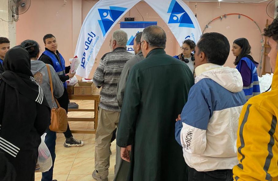 كما قامت المؤسسة بتوزيع سلع غذائية ولحوم علي أكثر من ٢٥٠ أسرة من الفئات الاولى بالرعاية في منطقة عزبة النخل بمحافظة القاهرة.