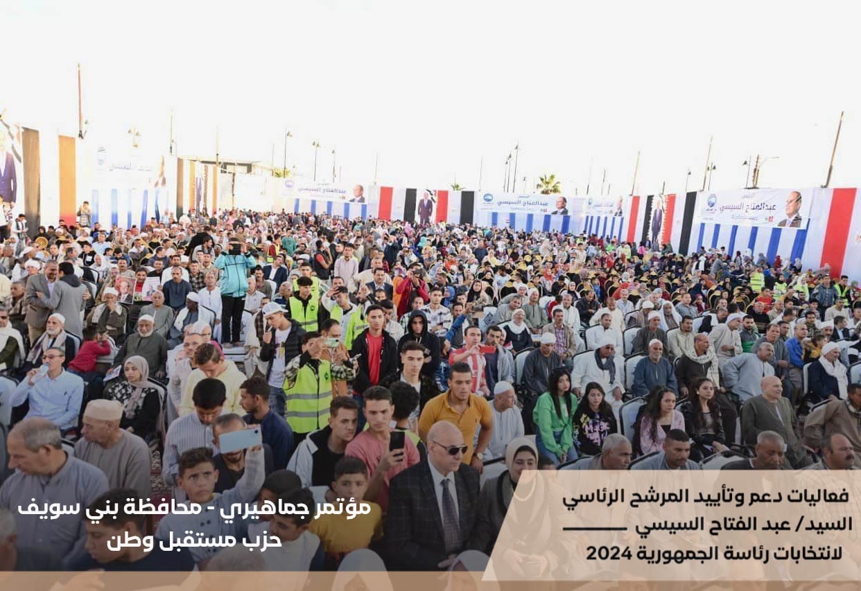 - نظمت أمانة حزب مستقبل وطن بني سويف مؤتمرا جماهيريا لدعم الرئيس عبد الفتاح السيسي والتأكيد علي أهمية المشاركة الايجابية و الفعاله في الاستحقاق الرئاسي القادم، بحضور 7 آلاف شخص.