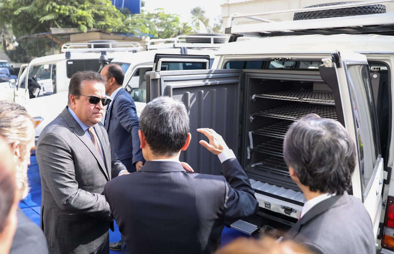 وزير الصحة يشهد استلام سيارات نقل اللقاحات المبردة المقدمة من دولة اليابان