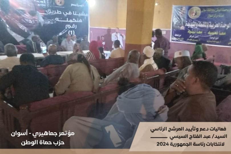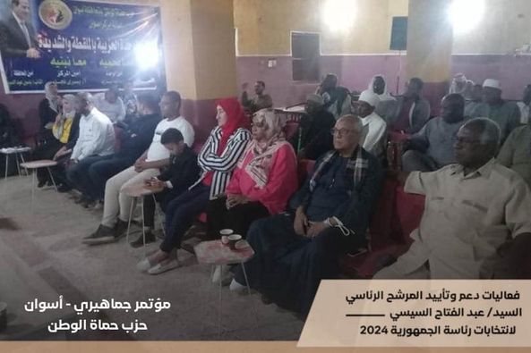 - من داخل قرية ابو الريش بمركز أسوان بمحافظة أسوان قام حزب حماة الوطن بعقد لقاءاً جماهيرياً لدعم المرشح عبد الفتاح السيسي كما تم التأكيد على ضرورة المشاركة الايجابية و الفعاله.