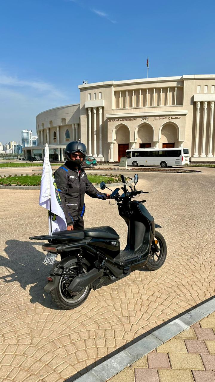 رحلة استثنائية.. مغامر مصري يصل إلى الإمارات على دراجة كهربائية للمشاركة في قمة المناخ
