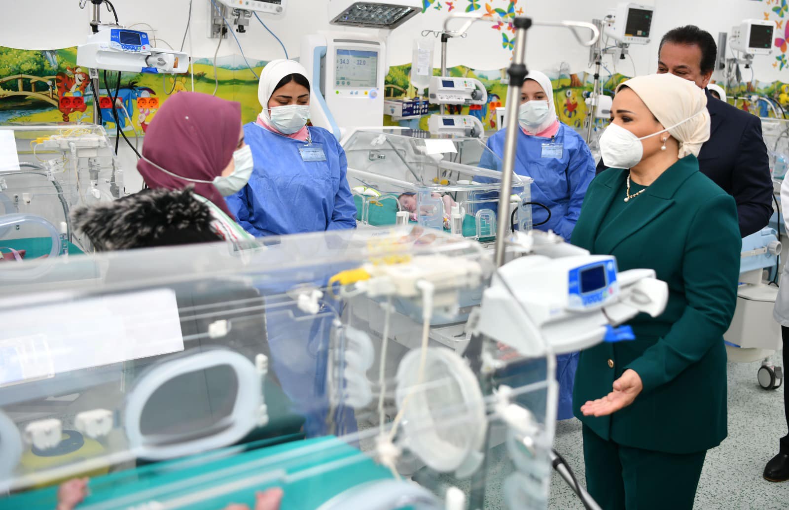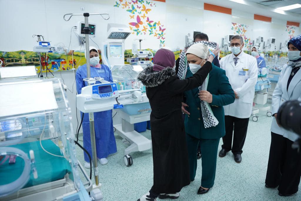 السيدة انتصار السيسي تزور أطفال فلسطين في مستشفى العاصمة الإدارية الجديدة
