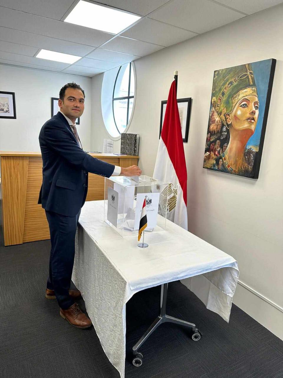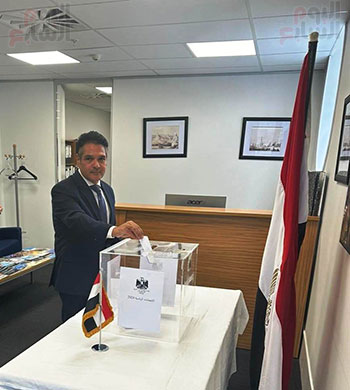 صافرة البداية تأتى من نيوزلندا بفارق توقيت 11 ساعة.. توجه المصريون لصناديق الاقتراع بمقر السفارة المصرية - صور
