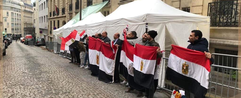 ونشرت غرفة العمليات المركزية للحملة الرسمية للمرشح الرئاسي عبد الفتاح صور للناخبين رافعين علم مصر في شوارع فرنسا وأمام مقار اللجان الانتخابية .