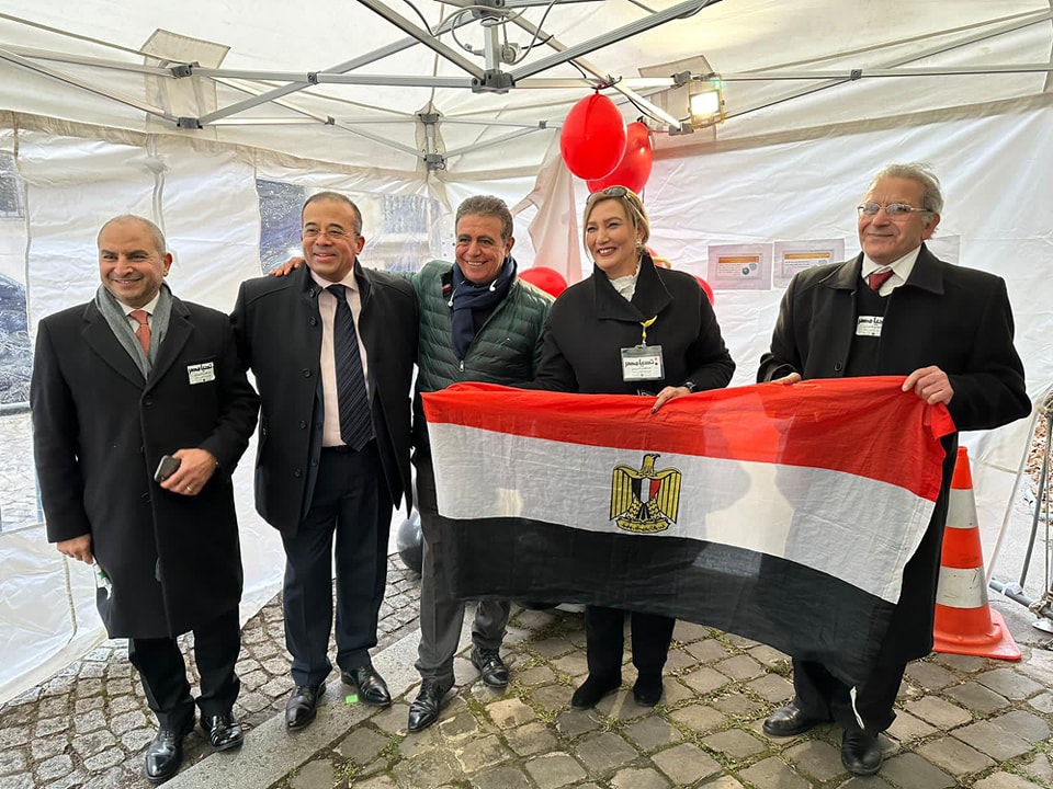 وحضر المواطنون المصريون رافعين أعلام مصر، وقاموا بالتقاط صور مع الأنبا مارك أسقف الكنيسة القبطية في باريس.