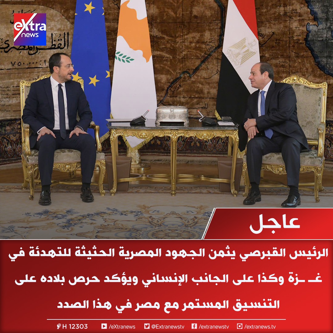 ومن جانبه، أشاد الرئيس القبرصي بالجهود المصرية الهادفة لتهدئة الوضع في قطاع غزة، إلي جانب جهودها علي الجانب الإنساني، مؤكدا علي حرص دولته الدائم علي التنسيق مع مصر في هذا الصدد.