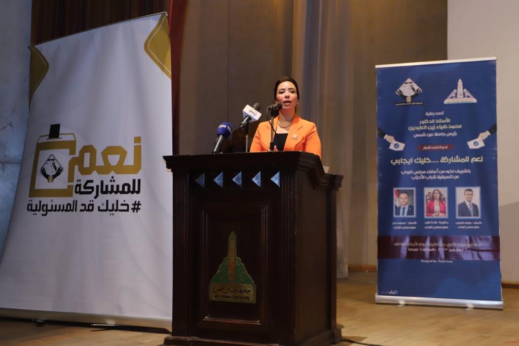 كما أشادت "علي" بوعي شباب الجامعات تجاه القضايا المجتمعية الراهنة، رغم ما يتعرضون له من حروب فكرية وثقافية وأيديولجية مختلفة، مضيفة أن الدولة المصرية لديها الكثير من الفرص التي يجب ان يتمسك بها الشباب، وأن المطلوب من الشباب المصري أن يشارك في تجربة الانتخابات الرئاسية التي يشهدها مرة واحدة فقط أثناء المرحلة الجامعية، وألا يتأثر بالأصوات المغرضة التي تحبط من همته أو حماسه في المشاركة.
