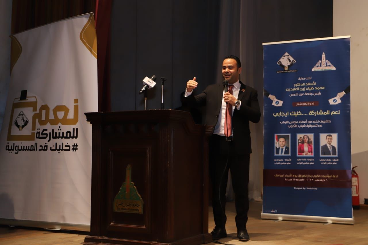 من جانبه، تحدث النائب محمود بدر، عضو مجلس النواب عن التنسيقية، عن التحديات التي مرت بها الدولة المصرية منذ ٢٠١٤ وحتى الآن، في مقارنة بين الوضع الماضي والحاضر من حيث الأمن والأمان وتنمية الريف المصري وخلافة من إنجازات من الدولة رغم التحديات، لافتا إلى أنّ شباب الجامعات تقع عليهم مسئولية المشاركة بشكل أساسي لأنهم مستقبل الأمة وحاضرها المشرق.
