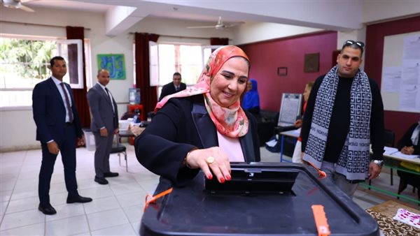 وزيرة التضامن تدلي بصوتها فى الانتخابات الرئاسية