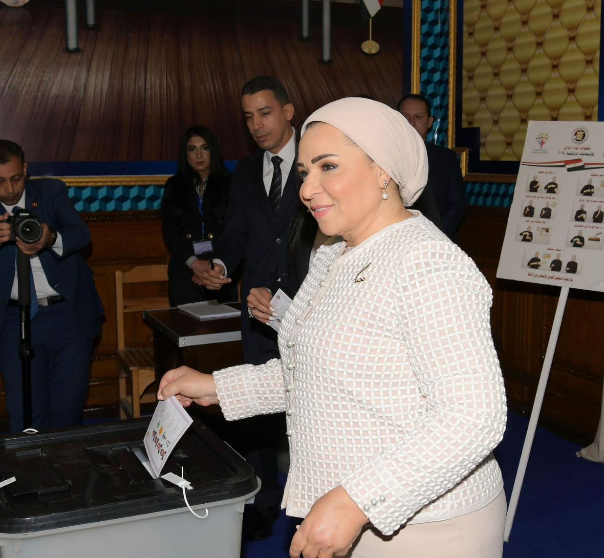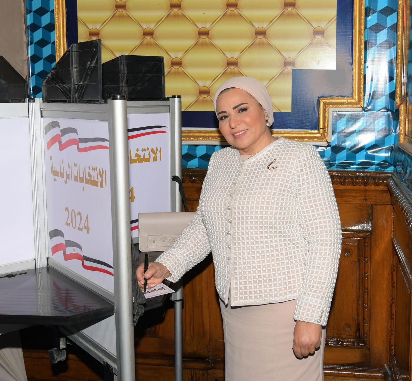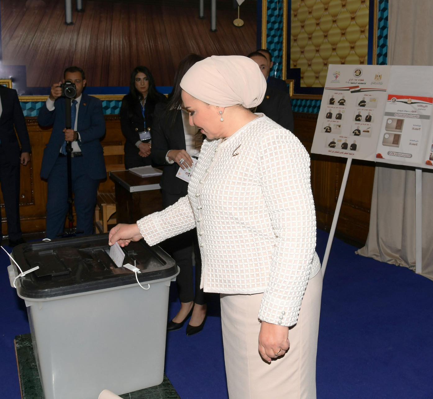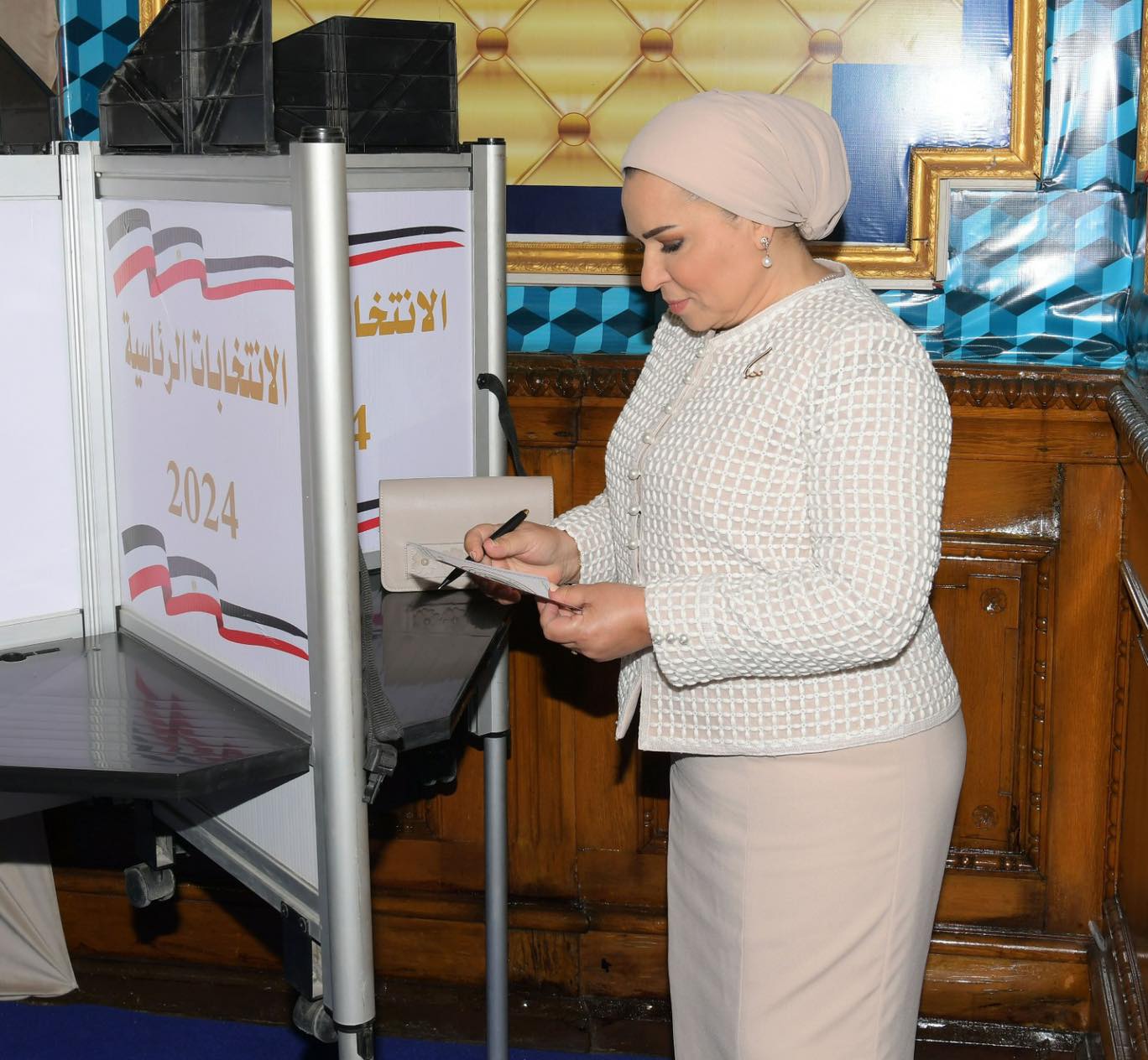 أدلت السيدة انتصار السيسي، قرينة المرشح الرئاسي عبدالفتاح السيسي، صباح اليوم، بصوتها في أول أيام تصويت المصريين في كل أنحاء الجمهورية، بالانتخابات الرئاسية 2024، و حيث رافقها نجلتها.