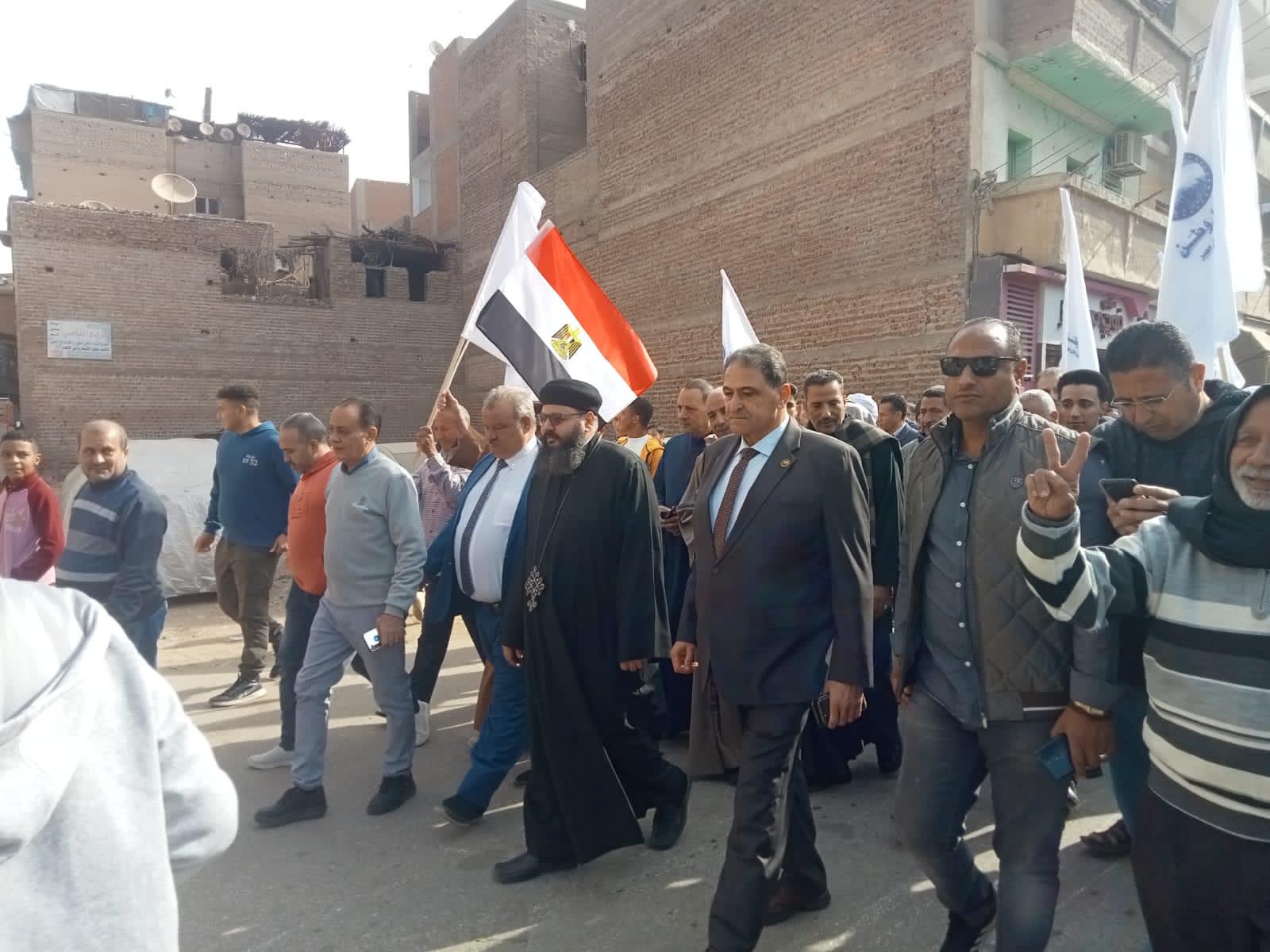 وشارك في المسيرة الآلاف من المواطنين من مختلف أنحاء قري مركز المراغة، وذلك دعما للرئيس وممارسة حقهم الدستوري في الانتخابات الرئاسية .