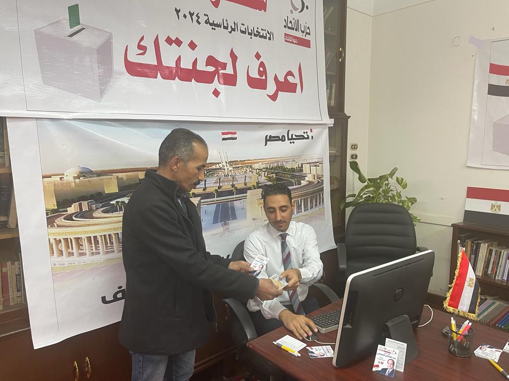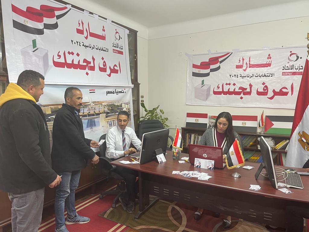 وقد شارك الحزب في عملية التنظيم واستخراج البيانات للناخبين من خلال توفير لابتوب وعمل بايكات كمظلة واستراحة للناخبين وبنرات للحث علي تشجيع الناخبين للمشاركة الايجابية يقوم بتوفير سيارات لنقل المواطنين ، وكذلك كارت يوضح رقم اللجنة الفرعية والرقم المسلسل للناخب.