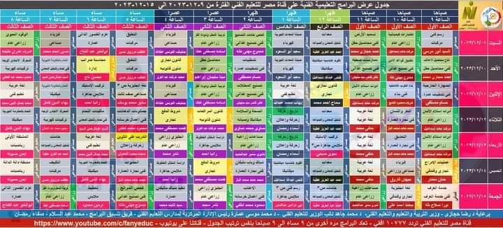 ننشر جدول عرض البرامج التعليمية الفنية على قناة مصر للتعليم الفني الفترة من 09-12-2023 الى 15-12-2023.