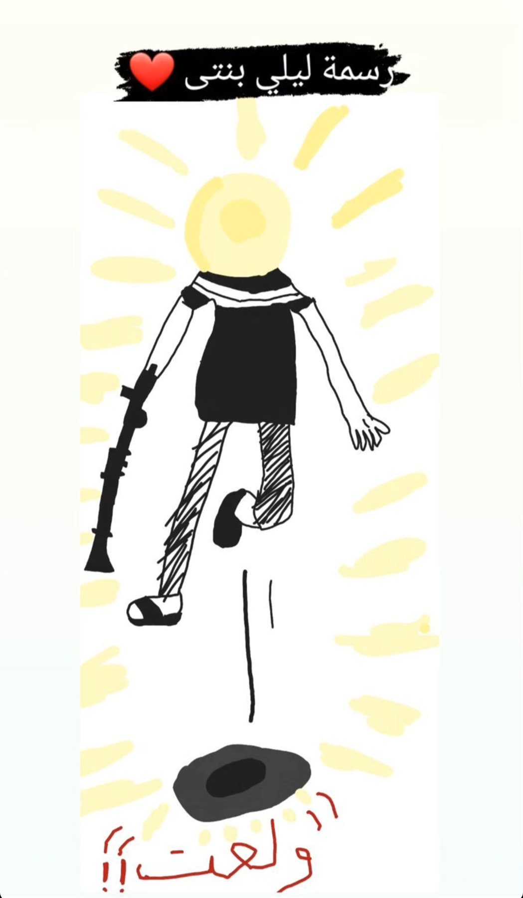 لابنته، وجاء في الصورة الذي نشرها على موقع التواصل الاجتماعي «إنستجرام»، رسمة لمناضل فلسطيني يفخر بانتقامه لوطنه، بعد أن دمر إحدى القطاعات الإسرائيلية، ودوّن عليه كلمة «ولعت».